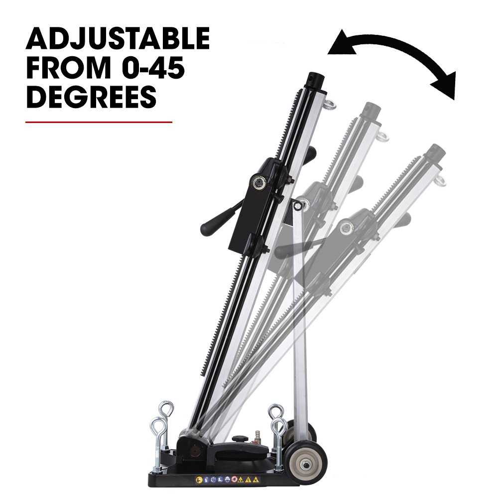 The Adjustable Wheeled Rig brings out superior performance from your core drill, with a maximum drilling diameter of 300mm. Designed for stability and precision, the stand can be mounted from 0 to 90 degrees and has an adjustable tilt of up to 45 degrees. Experience effortless control and accuracy while ensuring the utmost safety and stability.