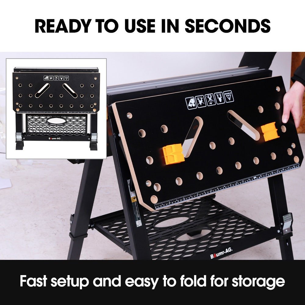 BAUMR-AG Portable Multifunction Workbench, 2-in-1 Worktable and Sawhorse, Height Adjustable, Expandable