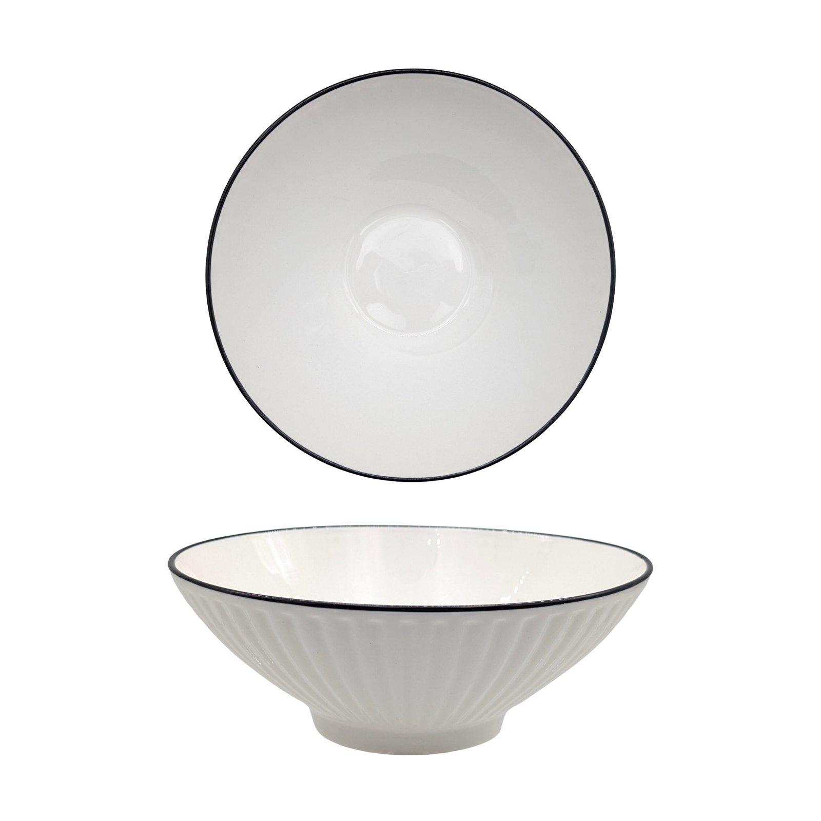 bulk 24 Sorrento Porcelain Embossed Soup Bowl w Black Rim 8″ 20cm