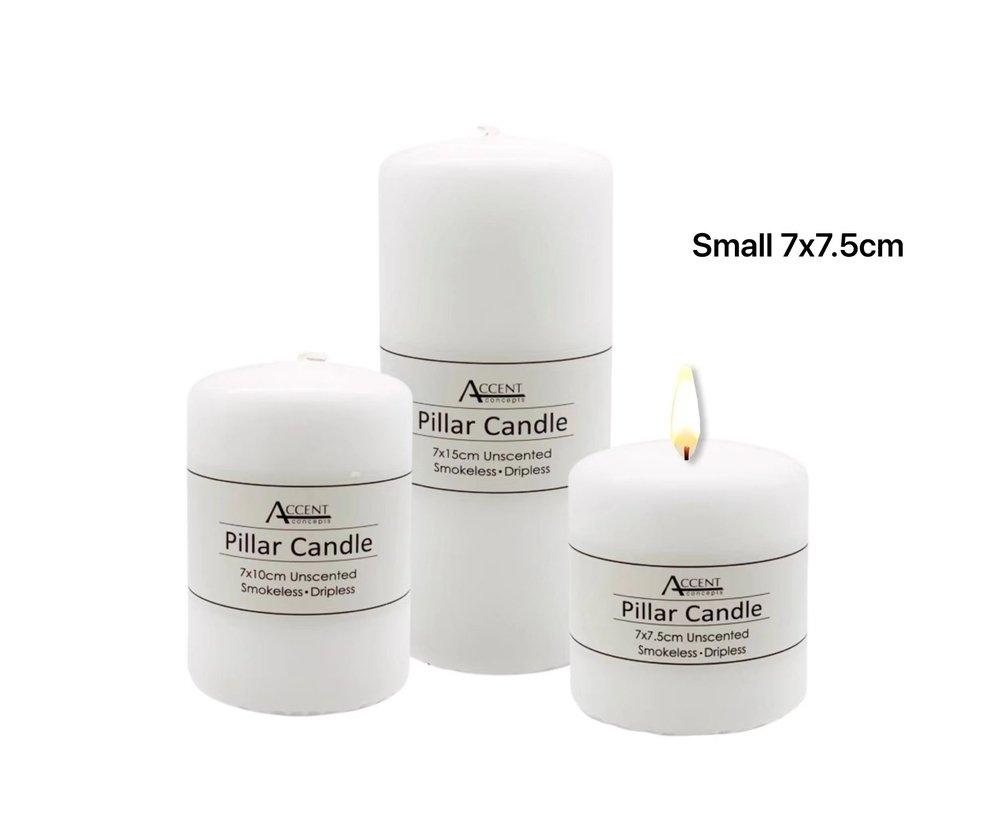 bulk 48 Unscented White Pillar Candle 7cm