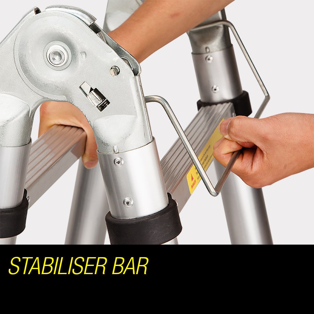 Featuring durable aluminium design, industrial-grade height-locking latches, solid rubber-tipped feet and a stabiliser bar, the Bullet telescopic ladder comes with full SGS Safety Certification. Who said that you have to take risks to look cool?