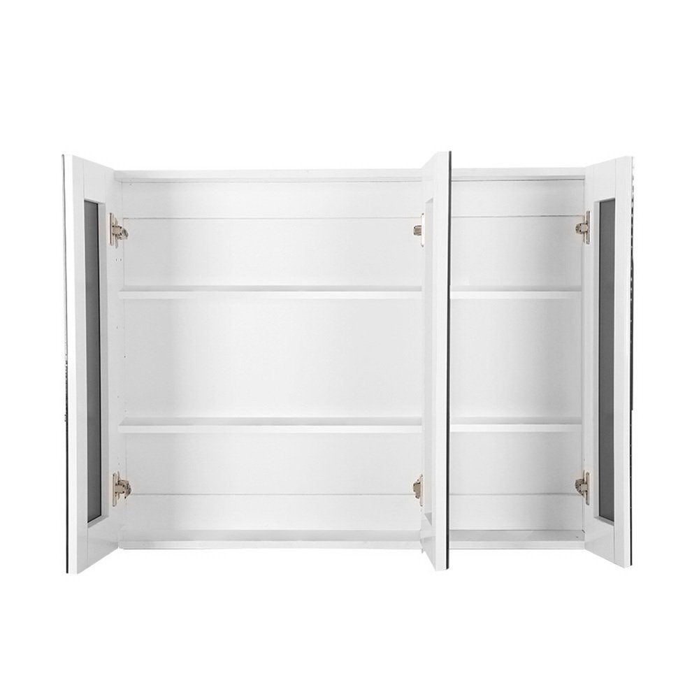 Finished in high gloss PU and made of quality 15mm MDF material, our Storage Mirror Cabinet is designed to be long-lasting and durable with a touch of class. The three soft-closing doors open to lots of storage space within the cabinet with adjustable shelves to suit your various storage requirements for toiletries, medicine and other bathroom essentials. Not least, the pencil-edge handles make this Storage Cabinet uniquely stylish whilst the crystal-clear mirrors reflect wide coverage with absolute clarity.