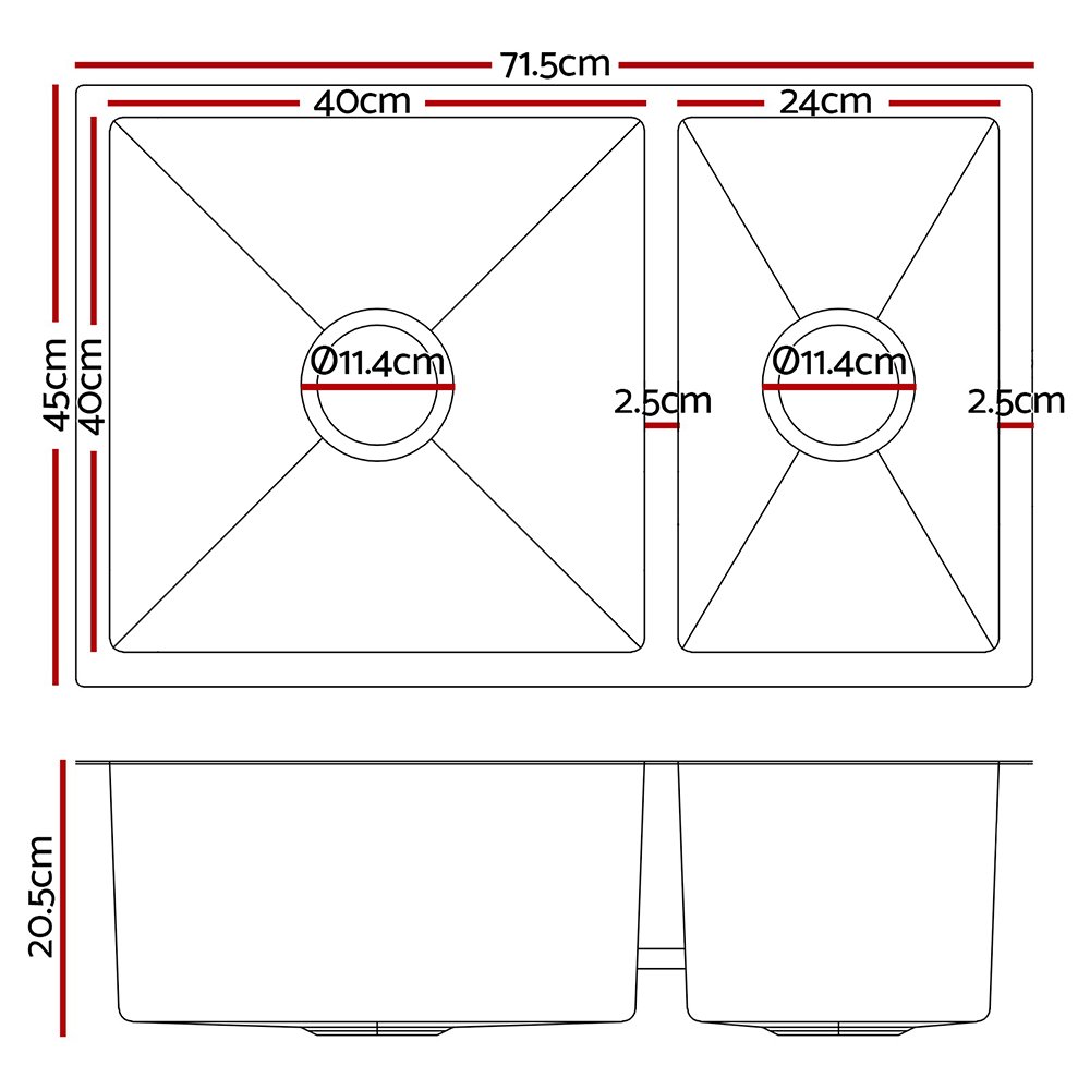 Cefito Kitchen Sink 71X45CM Stainless Steel Basin Double Bowl Silver