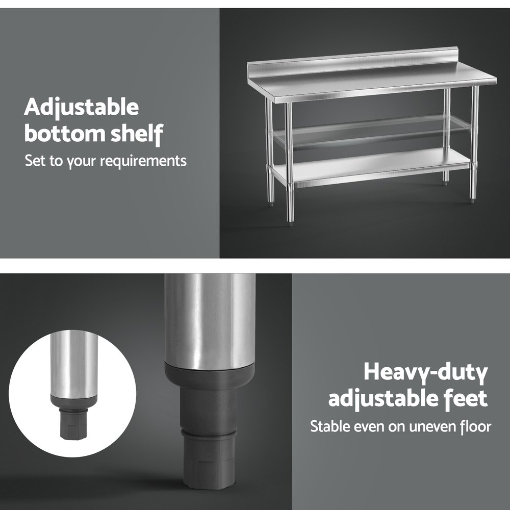 Cefito Stainless Steel Kitchen Bench w/ Splashback 1500x600MM 430