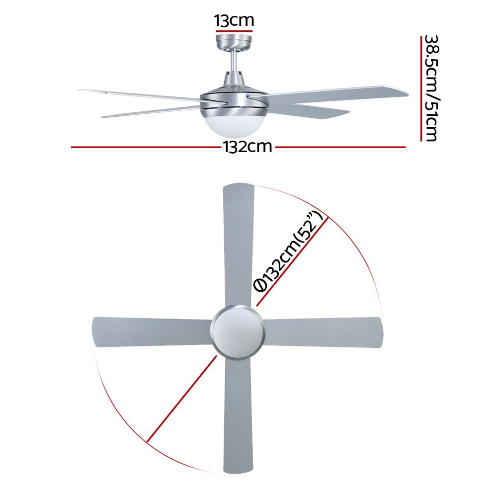 Devanti 52” Ceiling Fan DC Motor w/Light w/Remote – Silver