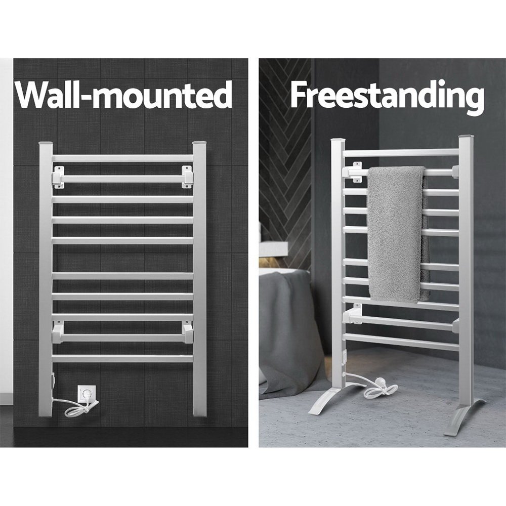 Devanti Electric Heated Towel Rail Rack 10 Bars Freestanding Clothes Dry Warmer