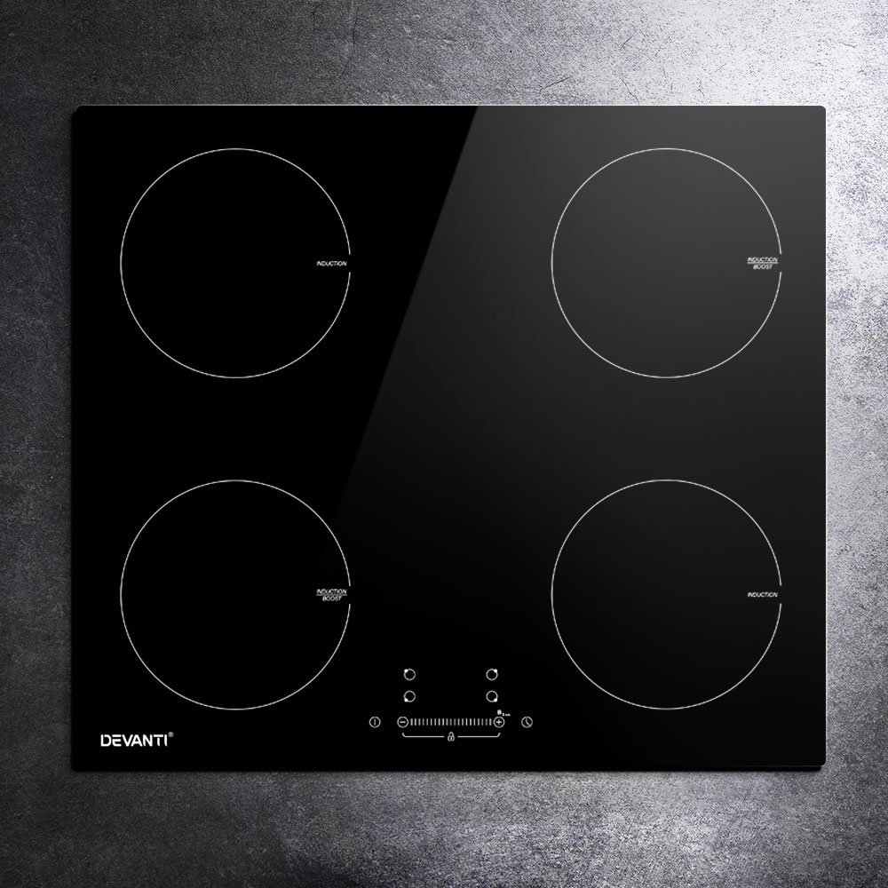 Whether it is for your existing or new home, the Devanti 60cm Induction Cooktop is just the thing you need for easy, no-fuss cooking. Loaded with an extensive list of chef-friendly features such as four high-wattage cooking zones, touch control and LED display panel, independent 99-min timers, overheat protection and efficient heat dissipation, this cooktop is also incredibly sleek with its high-grade black ceramic glass plate. It features nine power levels to choose from to prepare that perfect dish. Plus, the residual heat indicator also helps to tell when it is safe to touch the cooktop after turning the hot plates off, and a child safety lock prevents accidental usage. Better still, the cooktop will turn itself off when temperatures get excessively high, or you simply forget to turn it off after your cooking. Powerful and yet integrally safe, the cooktop promises many moments of hassle-free delicious cooking with the right blend of sophistication and class for your kitchen.