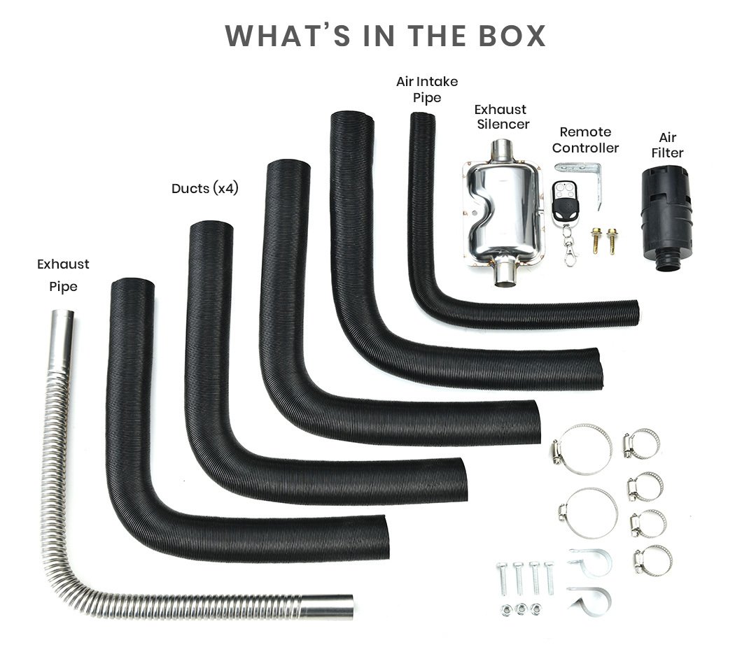 - 1 x Mounting hardware kit (nuts and bolts, plus ducting and exhaust hose clamps)