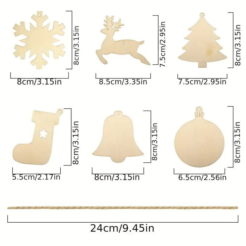 Create your own festive decorations with â€s 60pcs DIY wooden ornament set — perfect for crafting and personalizing your Christmas tree.