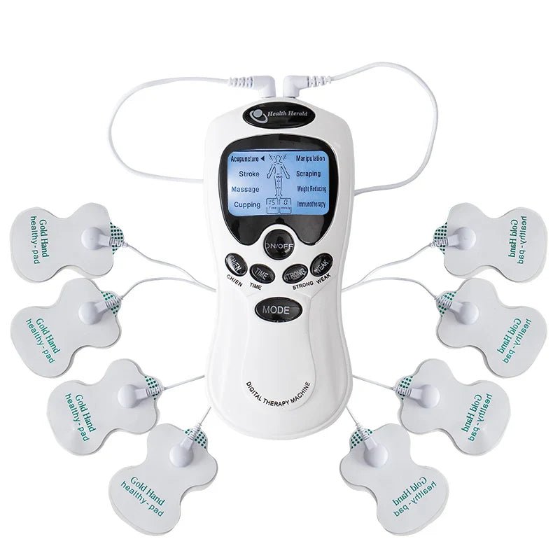 The Electric EMS TENS Pulse Massager is an 8-pad electrical muscle stimulator designed to relieve pain, reduce tension, and promote relaxation across the neck, back, shoulders, waist, and legs. Utilizing EMS (Electrical Muscle Stimulation) and TENS (Transcutaneous Electrical Nerve Stimulation) technology, it mimics acupuncture techniques to stimulate muscles, enhance circulation, and alleviate soreness.