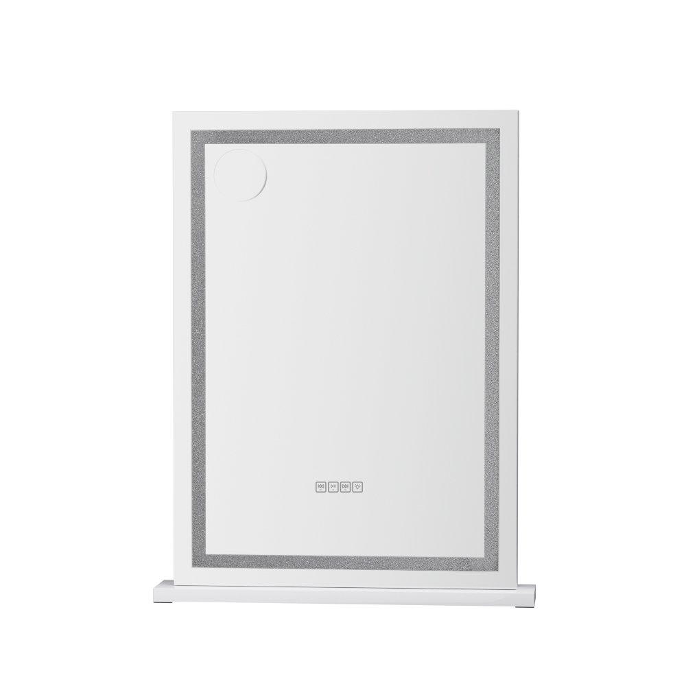 The frame is sturdy and lightweight, adding a touch of glamour to the entire mirror. The frame sits on an equally smooth powder-coated base for stability and durability. The base is detachable, so you can choose to wall mount your mirror and save space. The light is easily adjustable using the mirror touch controls. Adjust for brightness and colour temperature including warm light, natural light and cool light. A built-in Bluetooth speaker allows you to listen to your favourite audiobooks, music and podcasts as you go, and the USB charging port can help keep your devices charged at all times. Turn your bedroom into a celebrity dressing room overnight with the Embellir Makeup Mirror.