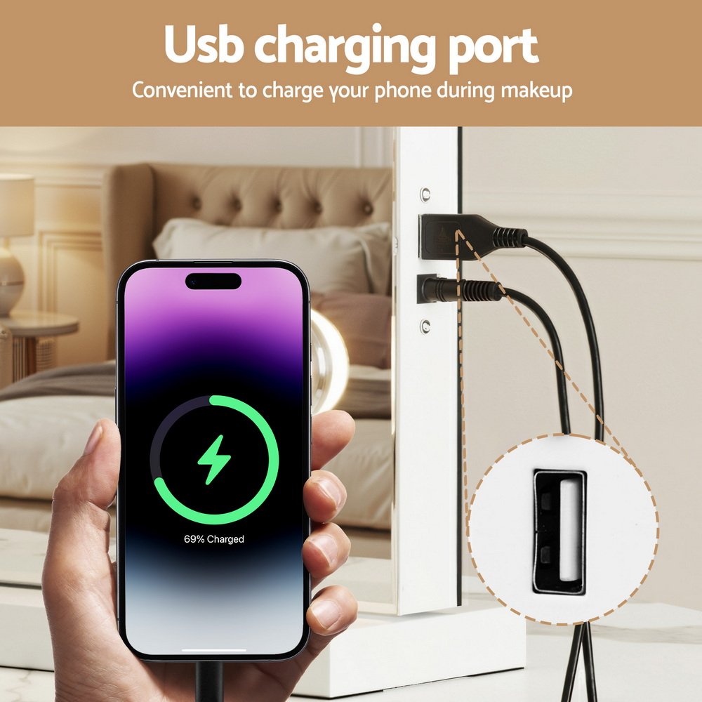 Get the star treatment with our gorgeous Embellir Make-up Mirror. Framed with 15 LED bulbs, this mirror really lights up your visage through your daily makeup regimen. The aluminium frame is sturdy, lightweight, and adds a touch of glamour to the entire mirror. The frame sits on an equally smooth powder-coated MDF base for stability and durability. Best of all, the built in Bluetooth speaker allows you to listen to your favourite audiobooks, music and podcasts as you go. Even more wonderful is that the LED light can be easily adjusted for brightness and colour temperature using our intelligent touch controls. Turn your bedroom or bathroom into a celebrity set overnight with our Embiller Make-up Mirror, and enjoy beauty in all its illuminated brilliance.