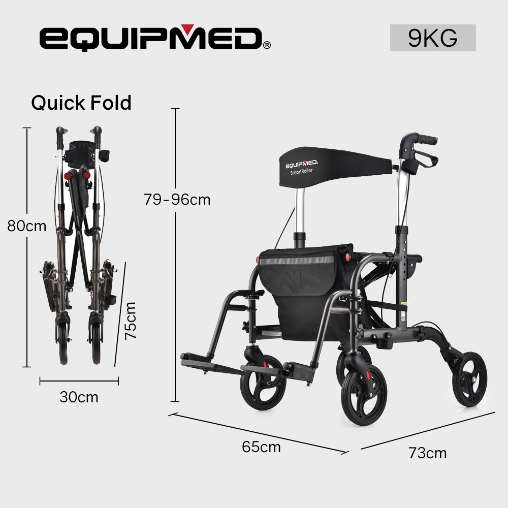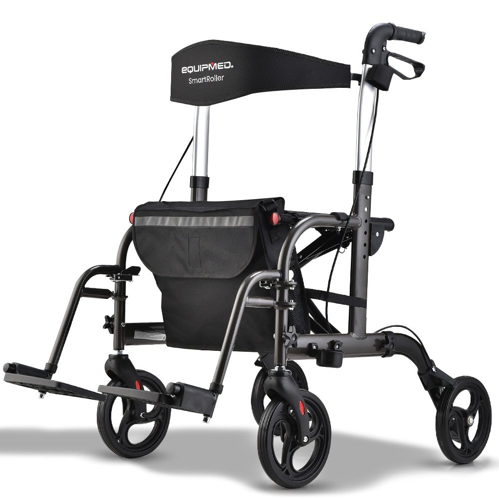 Make the smart choice and enjoy the mobility you deserve with the Equipmed SmartRoller 2-in-1 Rollator and Transit Wheelchair.