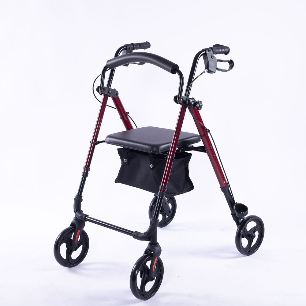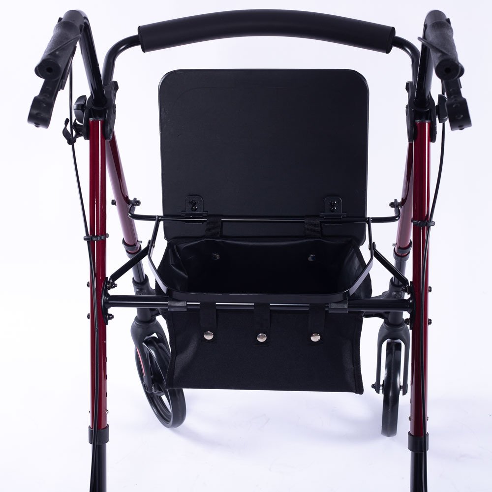 EQUIPMED 4 Wheel Lightweight Rollator Walker, Aluminium Frame, Seat, Carry Bag, for Seniors, Red