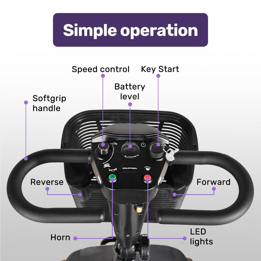 Regain independence with the Equipmed FreeLite+ Electric Mobility Scooter, designed for smooth, reliable travel. With a top speed of 8km/h and a 30km range, its perfect for everyday errands, social outings, and outdoor adventures.