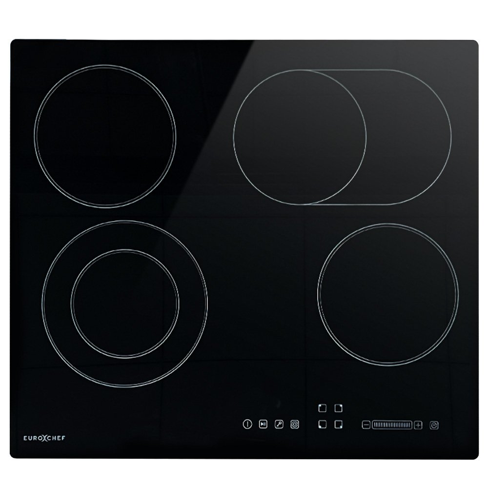 EuroChef 60cm 4 Zone Ceramic Cooktop, 6600W Electric, FlexiZone Adjustable Size Hobs, Touch Controls