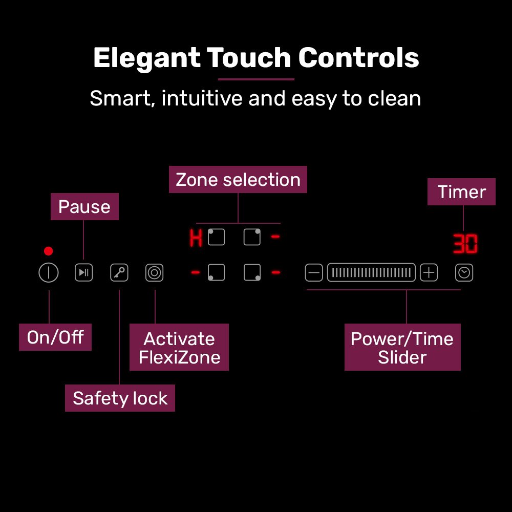 With four cooking zones you can quickly create a delicious meal for the whole family. Whether youre simmering dishes or searing steaks, the nine power level slider will allow you to make fast precise adjustments. Two of the hobs are FlexiZone equipped, allowing you to activate the outer ring to cater for your larger cookware.
