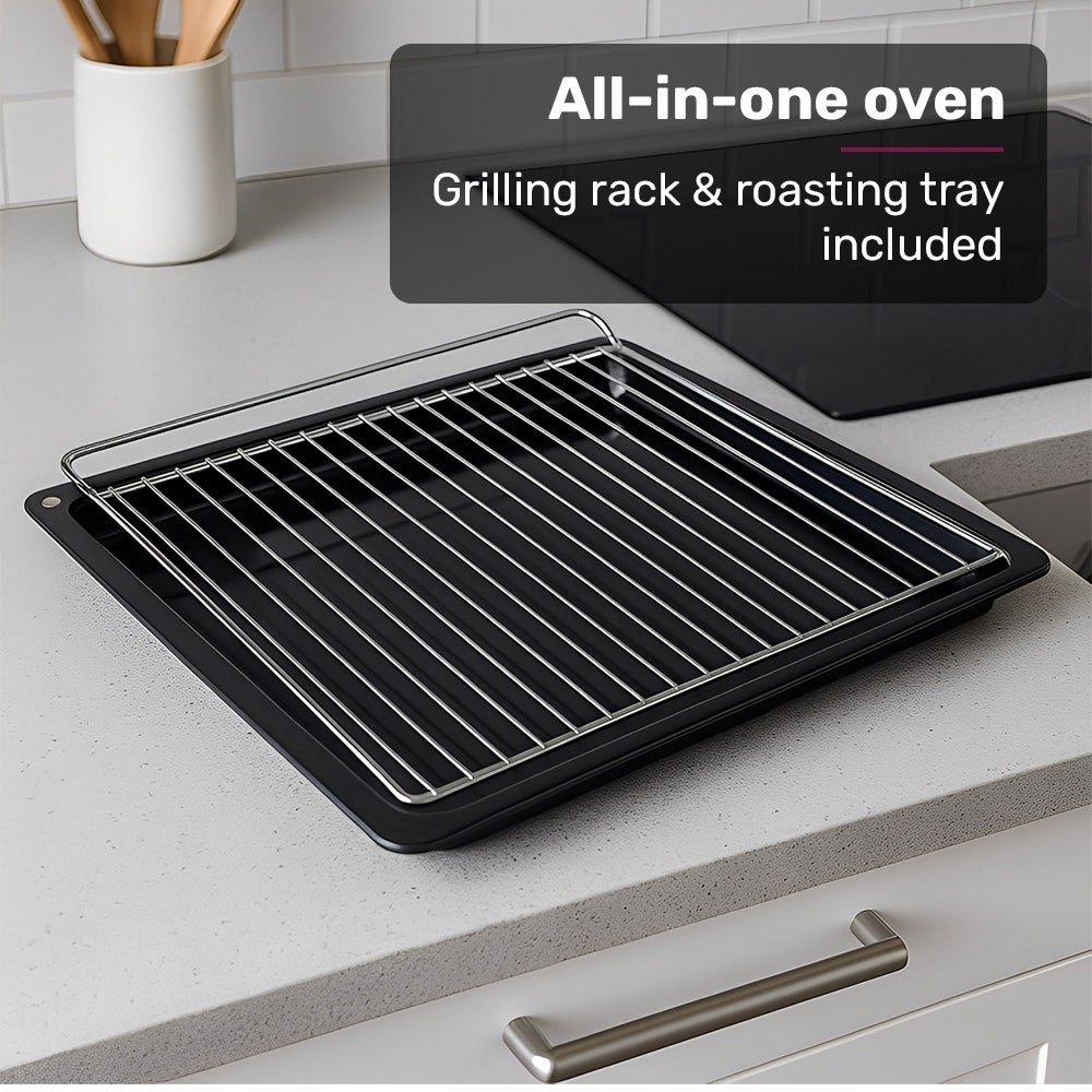 To cater for those special family occasions you’ll be able to take full advantage of the generous interior space thanks to the baking tray and grill rack. The big viewing window and oven light allow you to check on the food without opening the door.