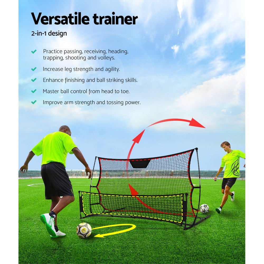 If you love the beautiful game, you will surely love the Everfit Portable Soccer Rebounder Net. Easy to set up, the portable goal comes with a sturdy powder-coated steel frame and a high-density PE net to practice your soccer skills. Passing, receiving, heading, trapping, volleys and shootings are all intermixed with reactive skills on dealing with unpredictable ball rebounds. From goalkeeper to full back to forward, every soccer position can be rigorously trained and tested in real game-like conditions. The frame itself is made with 40% more steel for extra durability. Plus, the four ground stakes ensure that the entire ensemble stays firmly in place with robust play. Not least, you can carry the goal easily to any location for a game with the bonus carry bag.