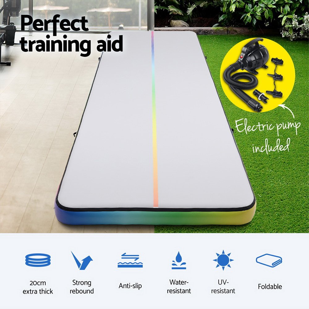 Everfit 6M Air Track Mat Inflatable Gymnastics Tumbling Mat W/ Pump Colourful