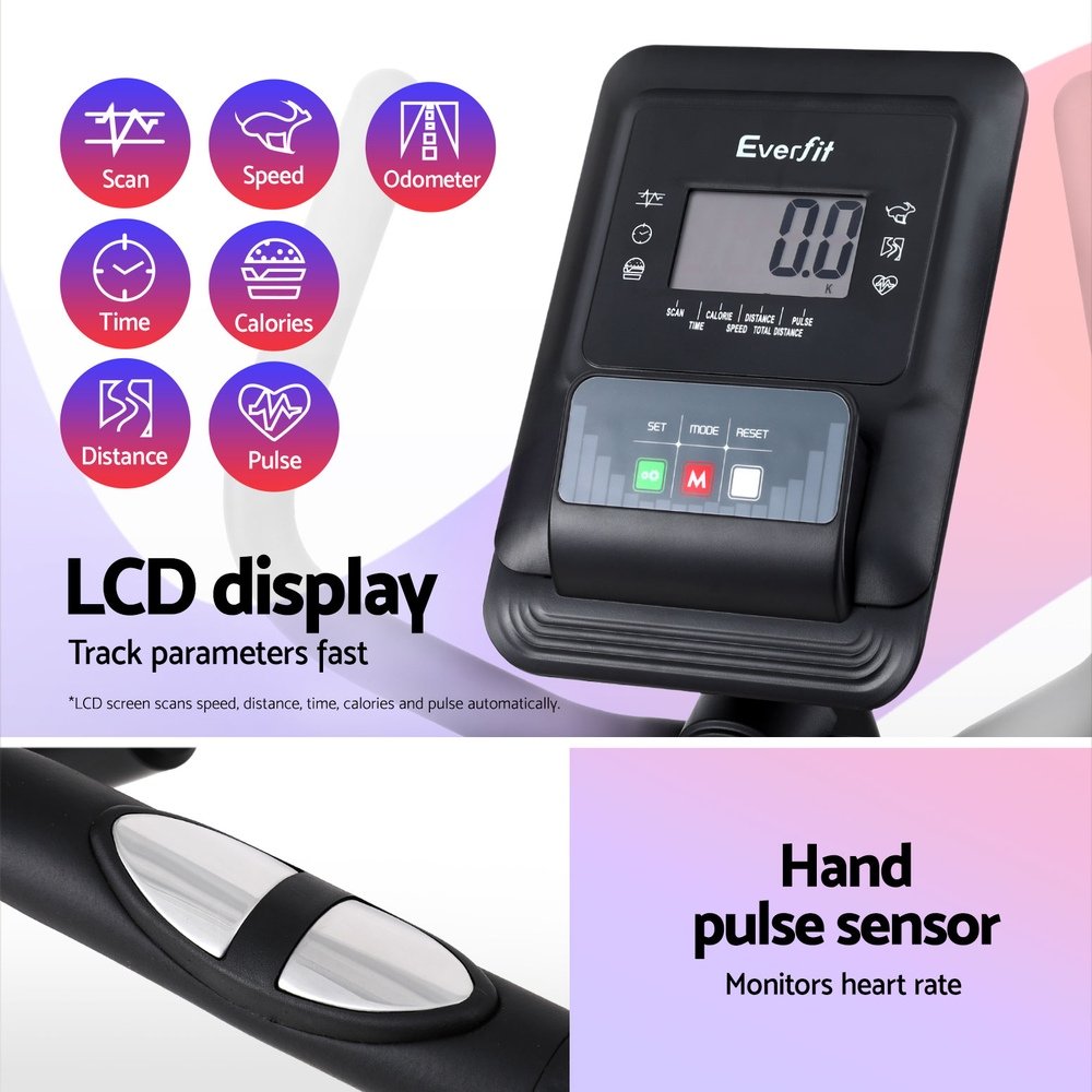 Stay active and fit with the Everfit Recumbent Exercise Bike, designed for a smooth and enjoyable workout experience. Its industrial-strength frame and 6kg flywheel ensure stability and durability, while the silent magnetic system delivers a seamless, noise-free ride. With eight adjustable resistance levels, you can customise your workout intensity to match your fitness goals.