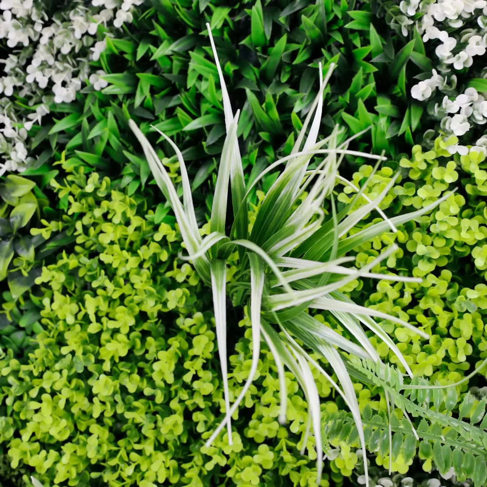 Lifelike Design: A rich variety of faux plants in vivid green and white shades for a realistic and stylish look.