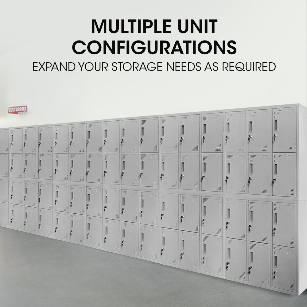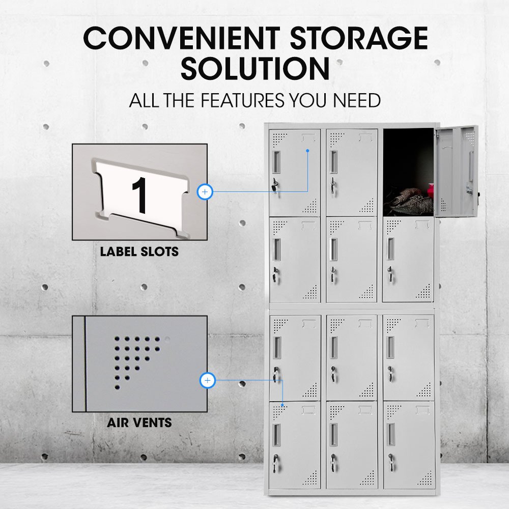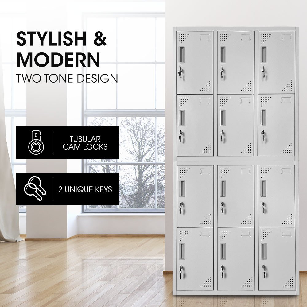 FORTIA 12 Doors Locker Cabinet Metal Storage Gym Home Office School – Light Grey