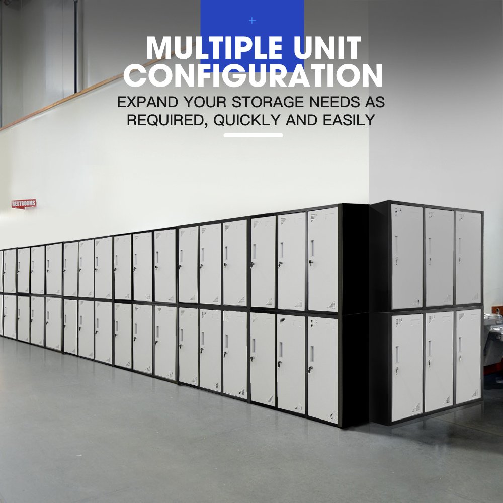 Fortia 6 Door Metal Storage Cabinet Lockers for Gym Office – Black and Grey