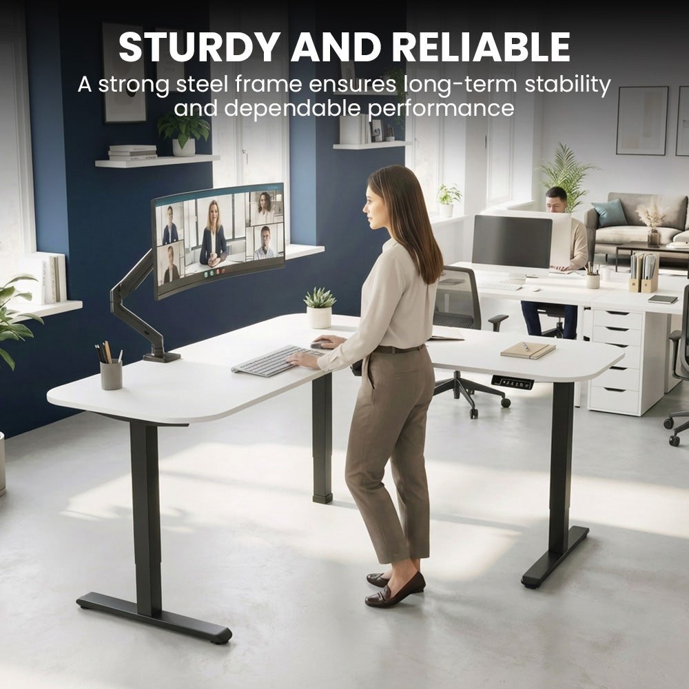 The FORTIA Sit-To-Stand Motorised Corner Desk transforms your workspace and is designed for Australian homes and offices. This motorised desk boosts productivity and comfort while allowing you to work in the position that suits you. Whether you are working, studying, or managing a busy household, you get smooth height adjustment at the touch of a button.