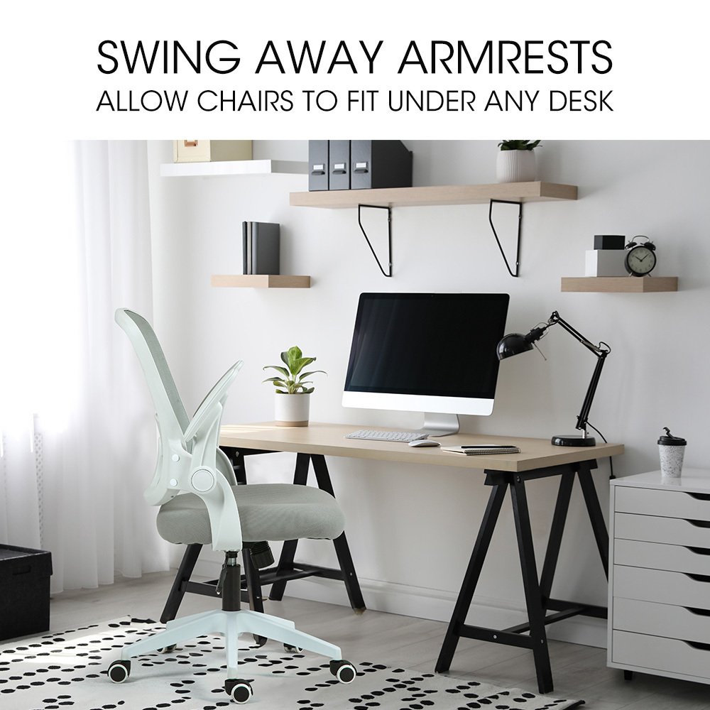 Fortia Ergonomic Office Desk Chair, Coolmesh Fabric, Adjustable Recline, Grey Mesh/White Frame