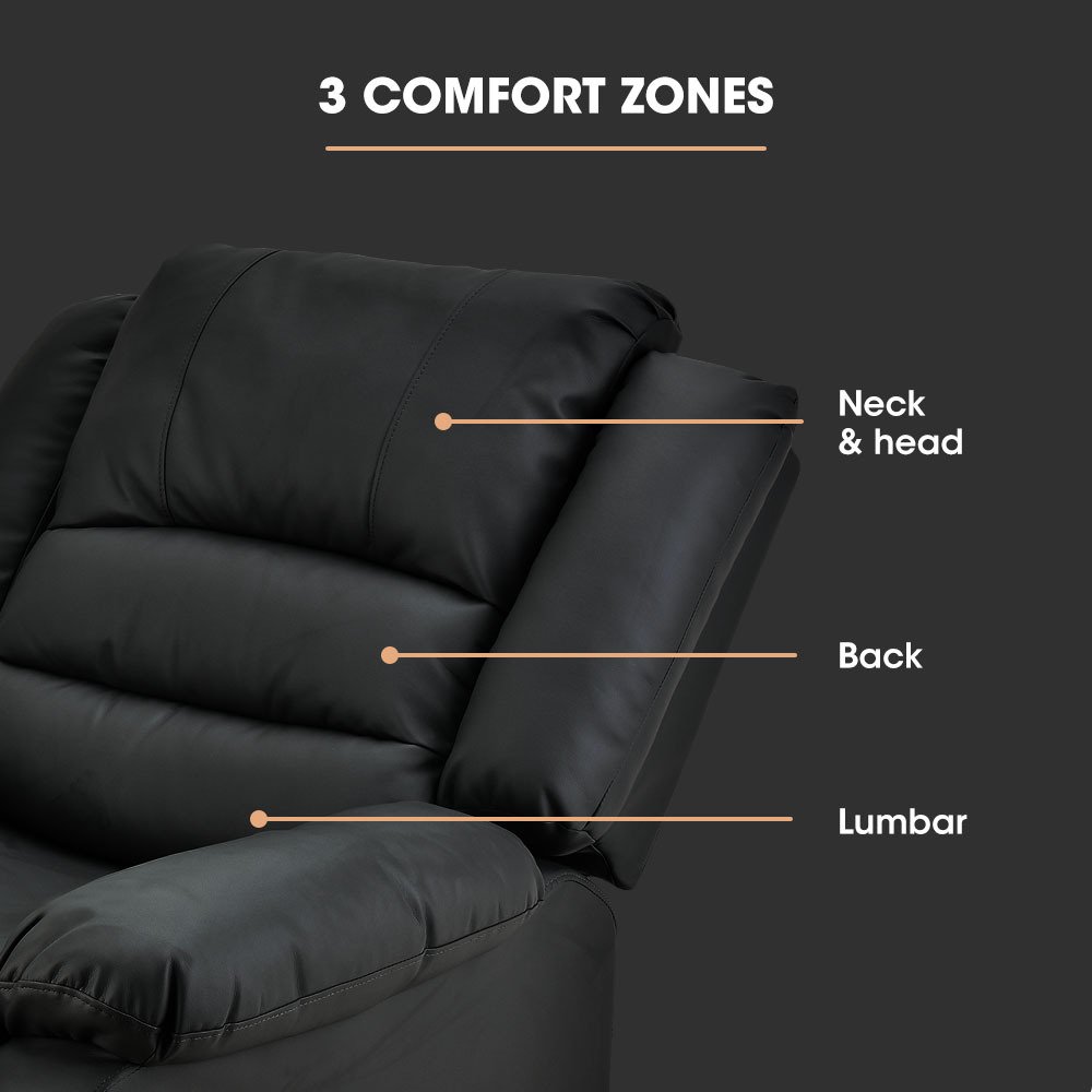 FORTIA Luxury Recliner Lounge Chair, Single Faux Leather Armchair, for Home Theatre Cinema, Elderly, Black