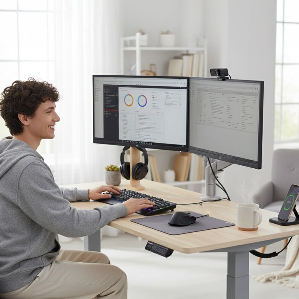 With whisper-quiet electric lifting from 72cm to 118cm and a sturdy frame capable of supporting up to 40kg, youll enjoy reliable performance while keeping your space clutter-free and efficient. Switching between sitting and standing helps combat fatigue and reduces the health risks associated with long periods of sitting, keeping you energised and focused throughout the day.