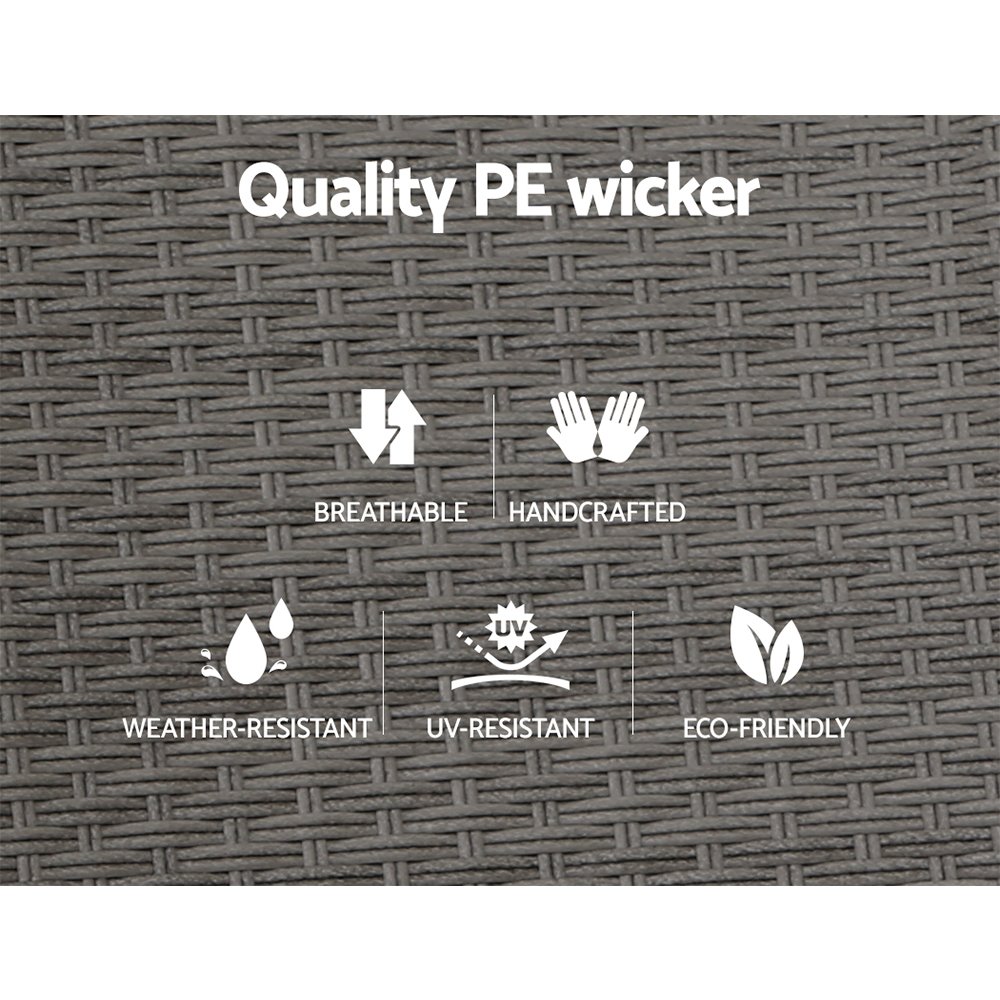 Gardeon 2PC Recliner Chairs Sun lounge Wicker Lounger Outdoor Furniture Adjustable Grey