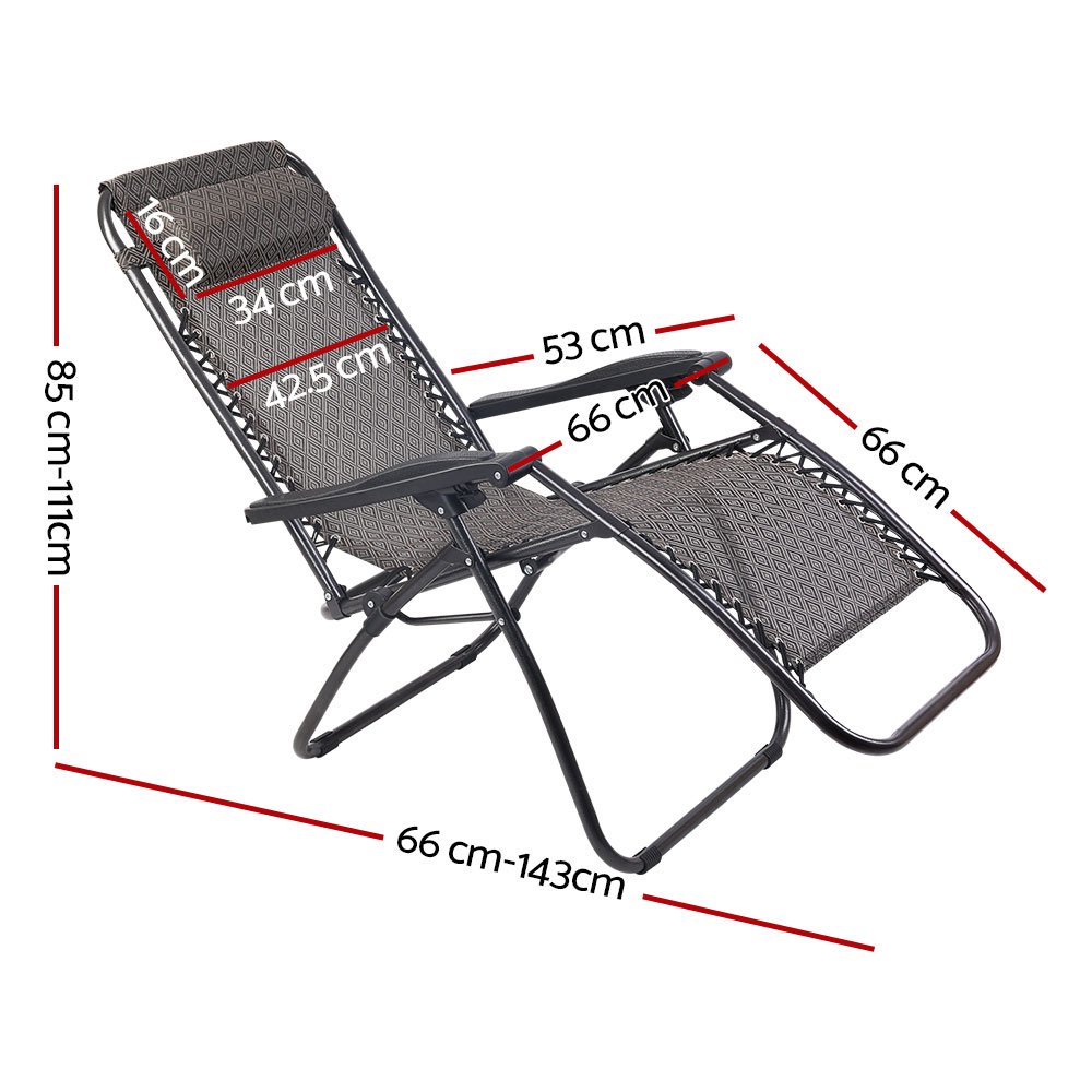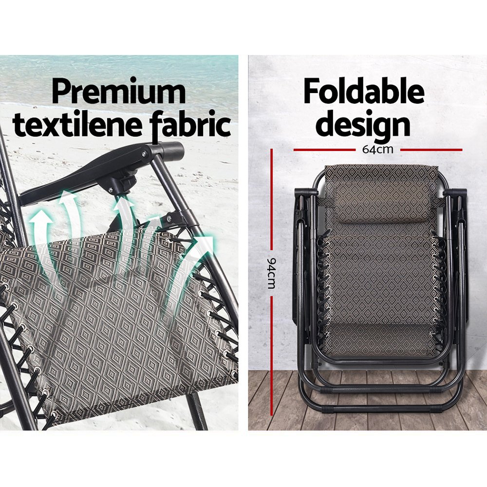 Gardeon 2PC Zero Gravity Chair Folding Outdoor Recliner Adjustable Sun Lounge Camping Beige
