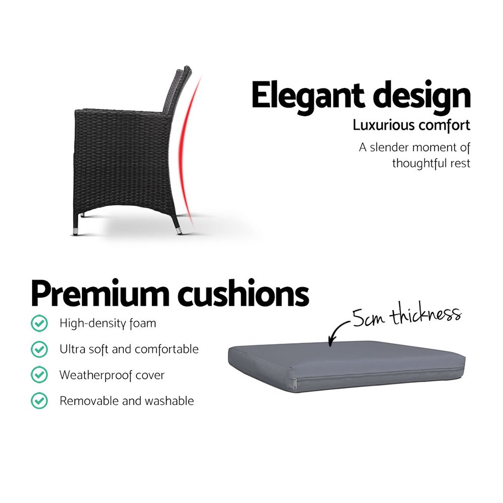 Gardeon 3PC Bistro Set Outdoor Furniture Rattan Table Chairs Cushion Patio Garden Idris