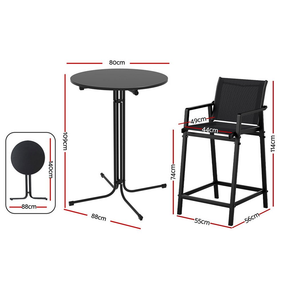 Gardeon 3PC Outdoor Bar Set Stools Dining Chairs Table Patio Furniture Bistro Set Steel Black