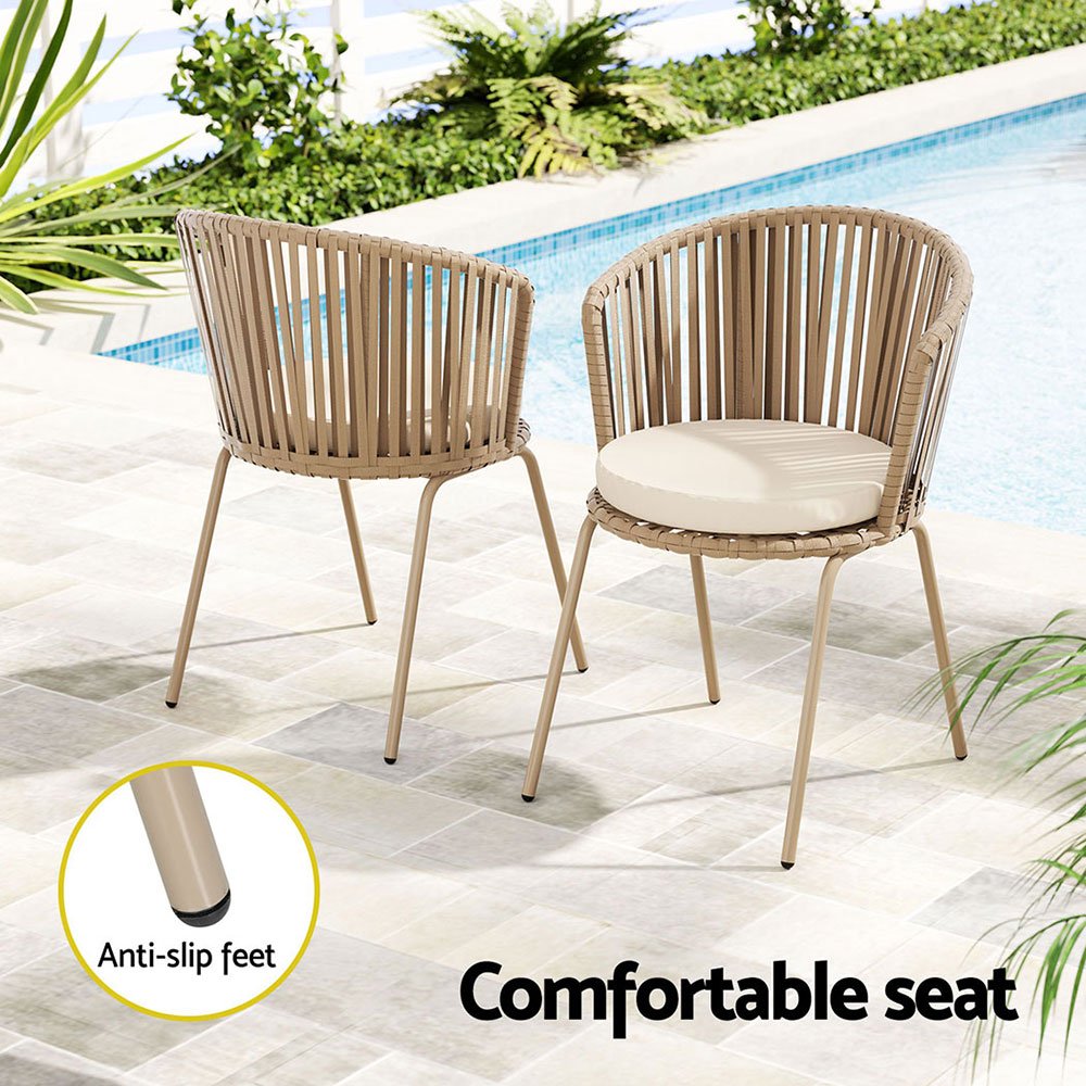 Gardeon 3PC Outdoor Bistro Set Patio Furniture Rope Setting Chairs Table Beige