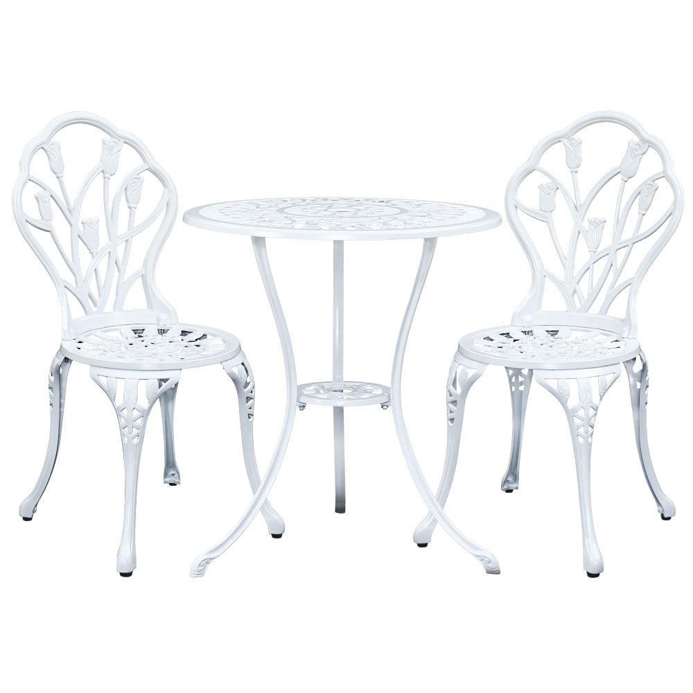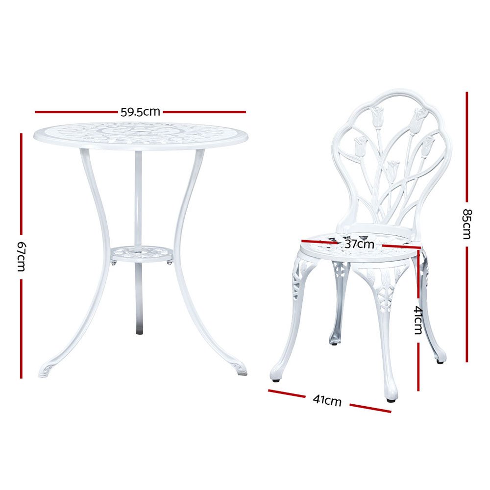 Gardeon 3PC Outdoor Setting Bistro Set Chairs Table Cast Aluminum Patio Furniture Tulip White