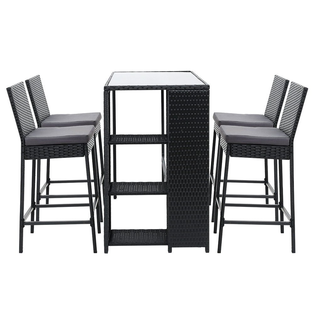 Gardeon 5-Piece Outdoor Bar Set Patio Dining Chairs Wicker Table Stools