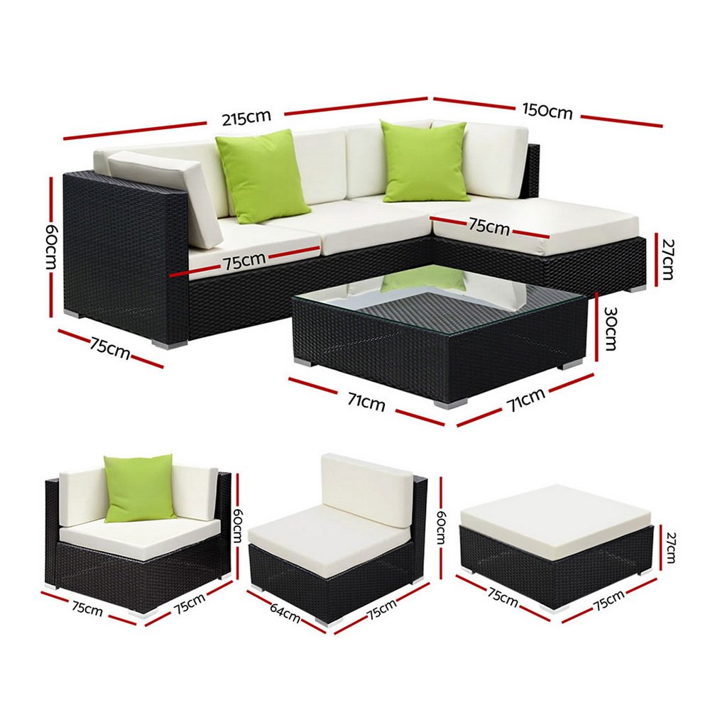 Gardeon 5-Piece Outdoor Sofa Set Wicker Couch Lounge Setting Cover