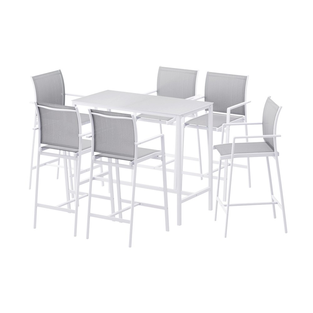 Gardeon 7PCS Outdoor Bar Set Stools Dining Chairs Table Patio Steel Bistro Set White
