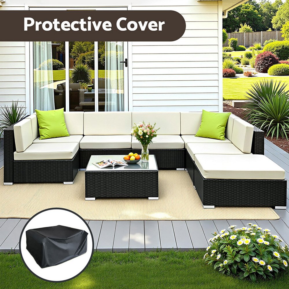 Leisure come easy with our Gardeon Outdoor Furniture Set. Our outdoor set promises luxurious and spacious comfort matched with long-term durability and robust use in any weather condition. With its UV-resistant PE wicker handiwork and heavy-duty aluminium frame, the stylish outdoor set is made to last. The table also comes with a 5mm thick tempered glass top for safety. Not least, the seat covers can be removed for washing and the set also include a water-resistant storage cover.Sofas need to be stacked before using storage cover.