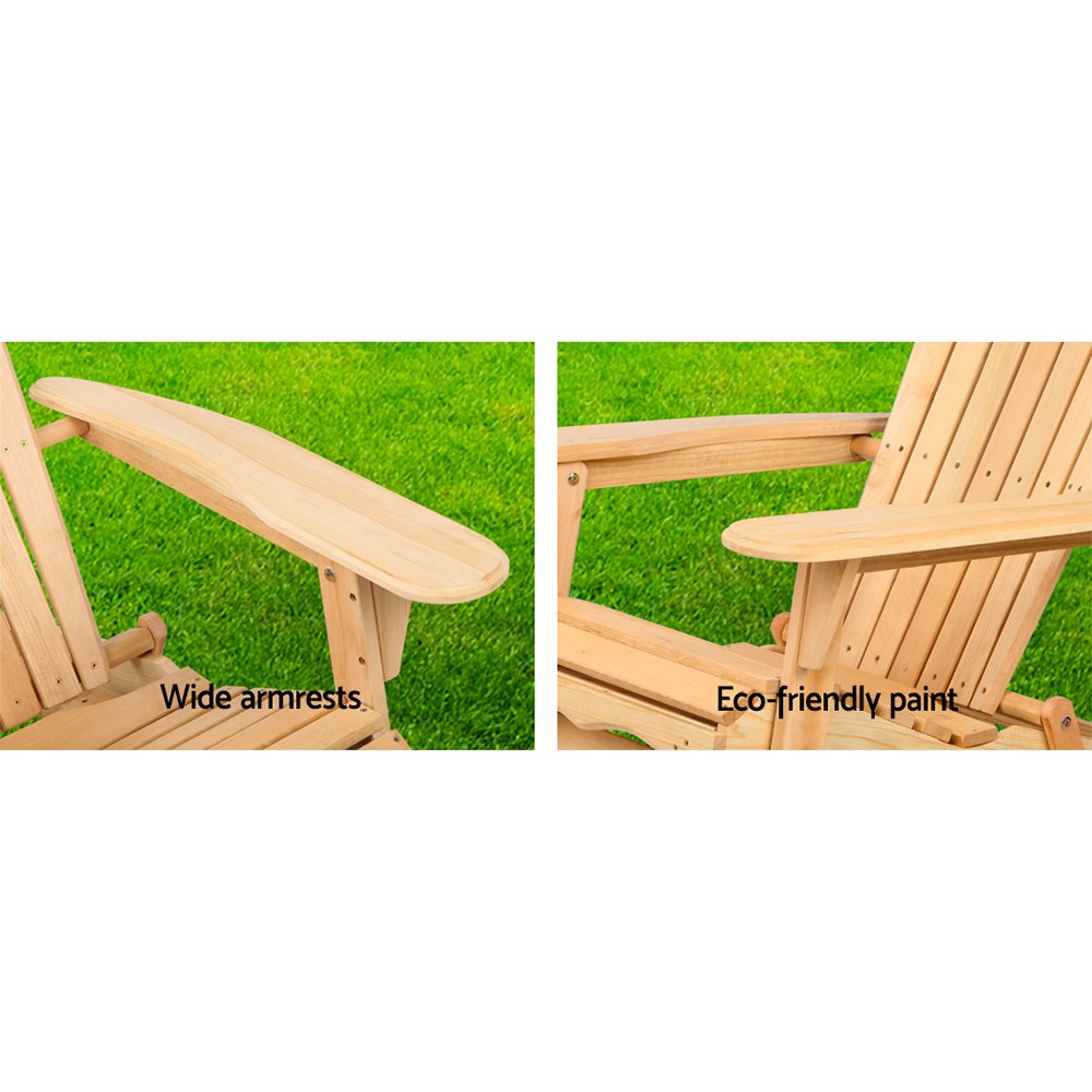 Gardeon Adirondack Outdoor Chairs Wooden Beach Chair Patio Furniture Garden Natural Set of 2