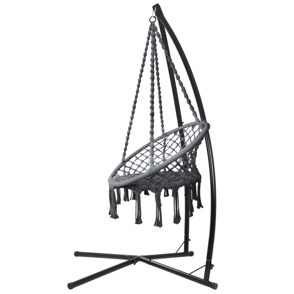 Gardeon Hammock Chair with Steel Stand Macrame Outdoor Swinging Grey