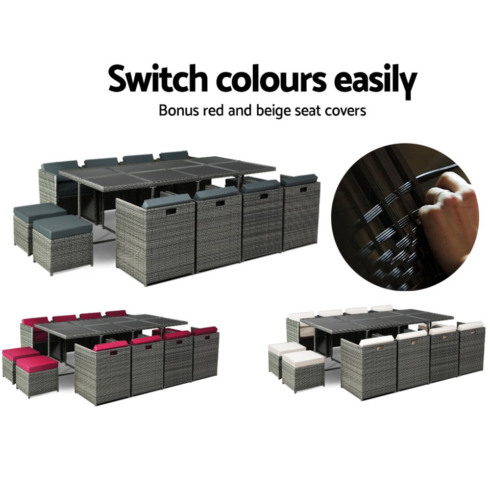 Gardeon Outdoor Dining Set 13 Piece Wicker Table Chairs Setting Grey