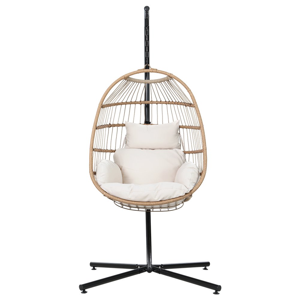 Gardeon Outdoor Egg Swing Chair Wicker Rope Furniture Pod Stand Foldable Yellow