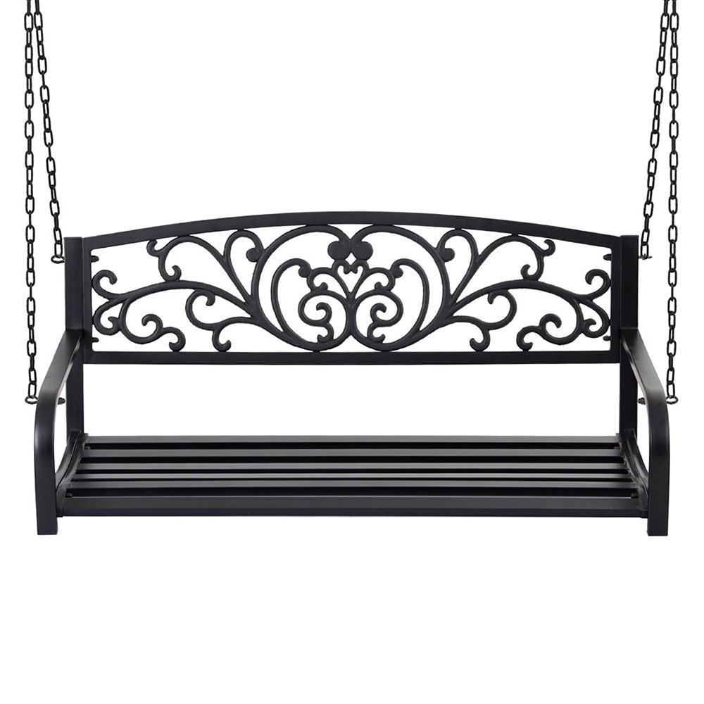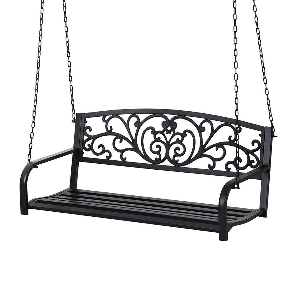 Gardeon Outdoor Porch Swing Chair Patio Furniture Floral Backrest 2 Seater Black
