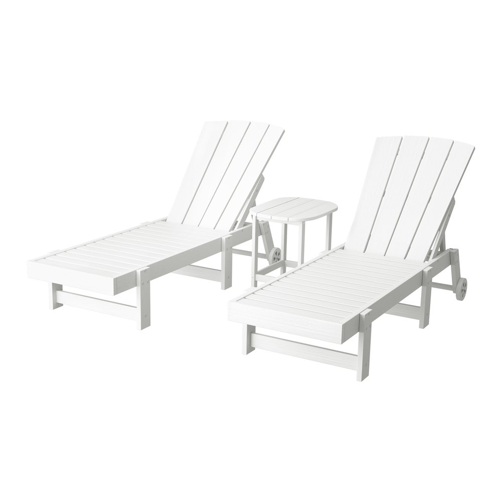 Gardeon Sun Lounge Lounger Table and Chairs Beach Chair Adirondack HDPE Patio Outdoor Furniture Wheels White