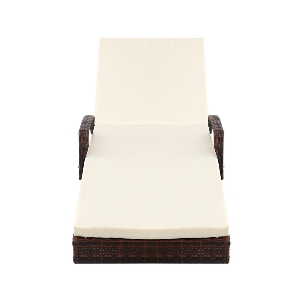 Gardeon Sun Lounge Wicker Lounger Outdoor Furniture Beach Chair Patio Adjustable Cushion Brown