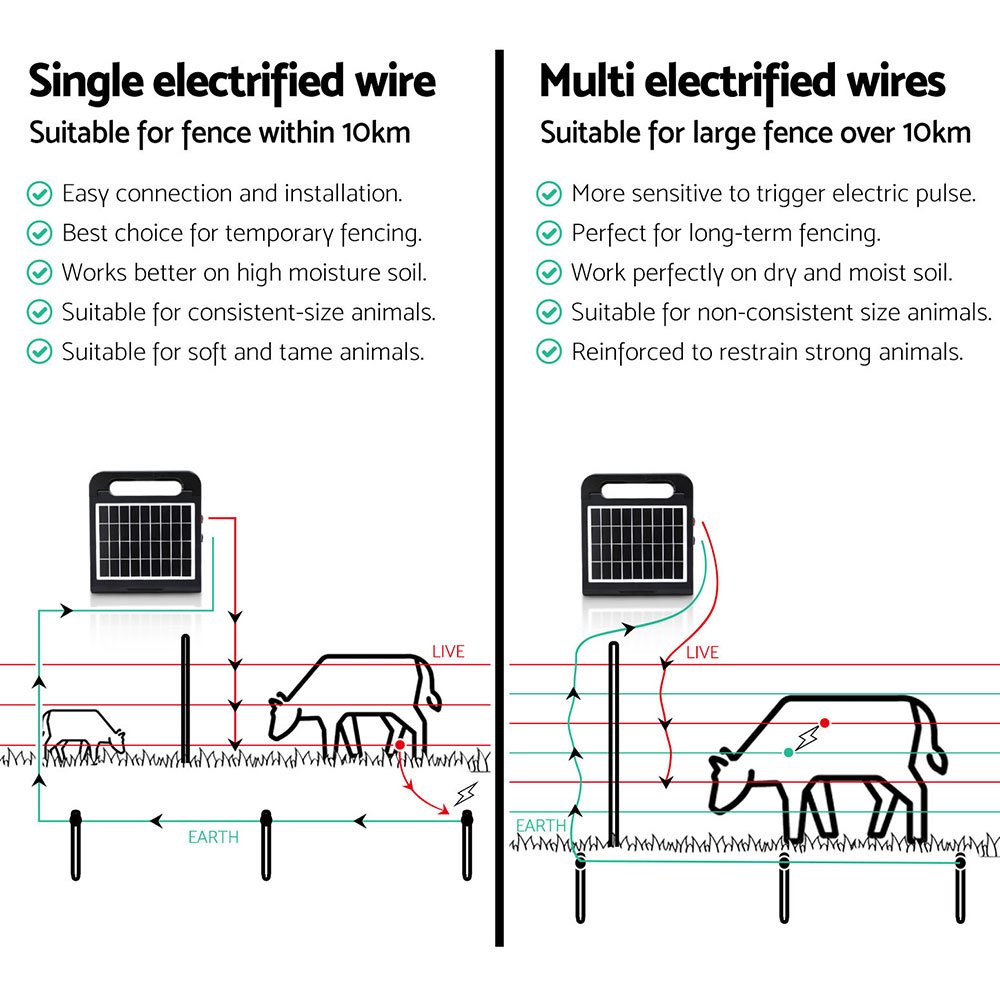 Giantz 10km Electric Fence Energiser Solar Energizer Charger Farm Animal 0.3J